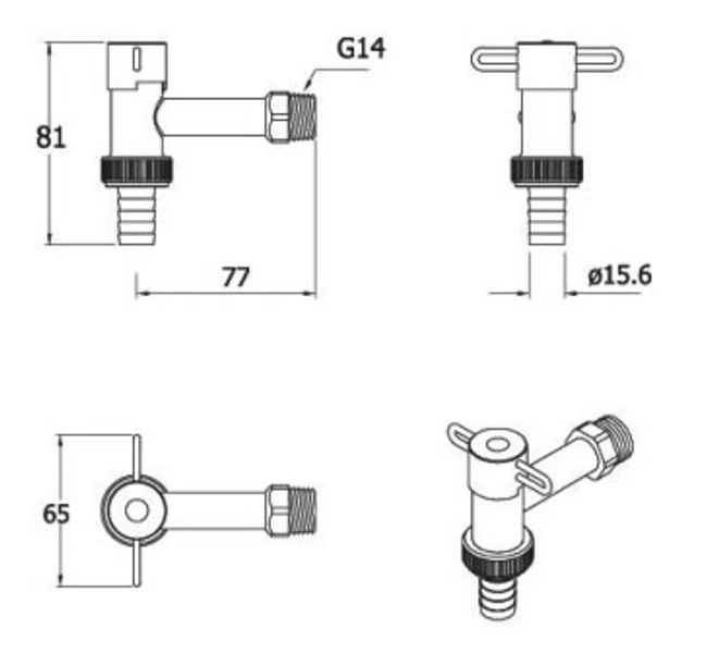Om een waterdichte verbinding te maken tussen fittingen of kranen met schroefdraad is het het makkelijkste om teflon tape te gebruiken. Bekijk de technische tekening onder de sectie ‘Downloads’.