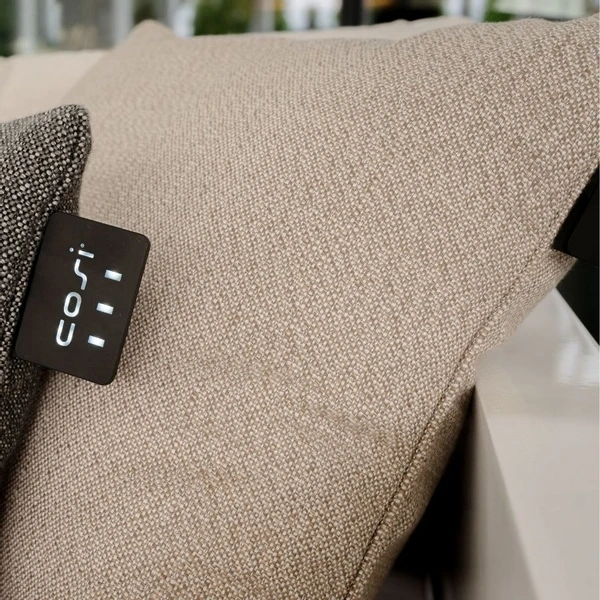Wist je dat dit kussen eco-friendly is? Wanneer je dit kussen gebruikt is de warmte meteen voelbaar en zo hoef je de thermostaat of terrasheater niet aan te zetten. De intensiteit van de warmte bepaal je helemaal zelf. Het kussen heeft namelijk drie verschillende standen. Zet ´m op standje low 38°C, mid 45°C of high 50°C. De stand selecteer je via de warmteknop op het kussen. Met een enkele druk op de knop wordt het infrarood warmte-element geactiveerd. Of het nu overdag of avond is: je geniet van de heerlijke warmte van deze Cosipillow.