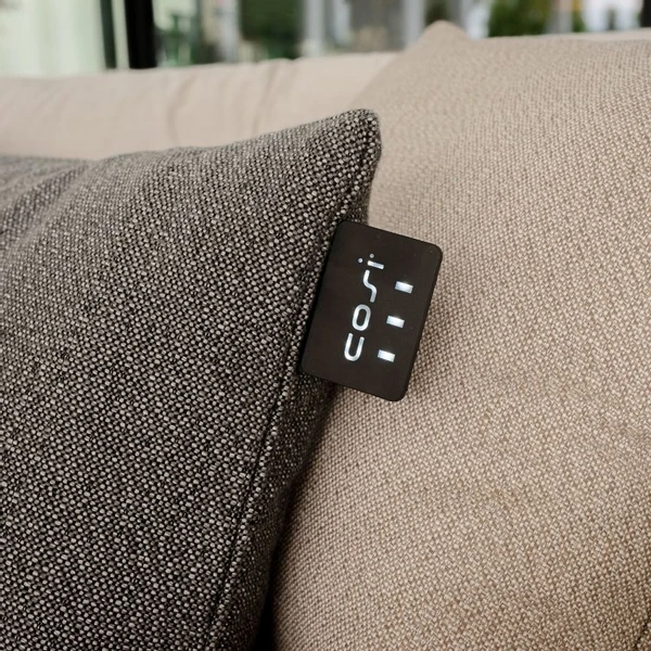 Wist je dat dit kussen eco-friendly is? Wanneer je dit kussen gebruikt is de warmte meteen voelbaar en zo hoef je de thermostaat of terrasheater niet aan te zetten. De intensiteit van de warmte bepaal je helemaal zelf. Het kussen heeft namelijk drie verschillende standen. Zet ´m op standje low 38°C, mid 45°C of high 50°C. De stand selecteer je via de warmteknop op het kussen. Met een enkele druk op de knop wordt het infrarood warmte-element geactiveerd. Of het nu overdag of avond is: je geniet van de heerlijke warmte van deze Cosipillow.