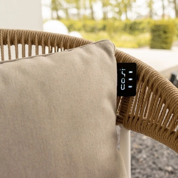 Wist je dat dit kussen eco-friendly is? Wanneer je dit kussen gebruikt is de warmte meteen voelbaar en zo hoef je de thermostaat of terrasheater niet aan te zetten. De intensiteit van de warmte bepaal je helemaal zelf. Het kussen heeft namelijk drie verschillende standen. Zet ´m op standje low 38°C, mid 45°C of high 50°C. De stand selecteer je via de warmteknop op het kussen. Met een enkele druk op de knop wordt het infrarood warmte-element geactiveerd. Of het nu overdag of avond is: je geniet van de heerlijke warmte van deze Cosipillow.