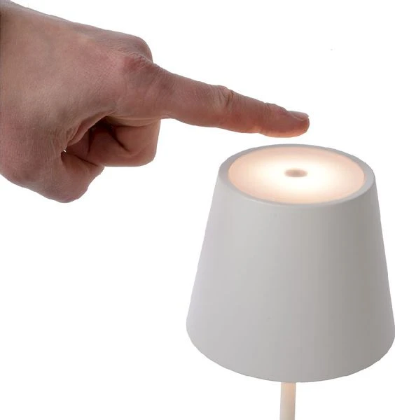 Deze tafellamp van Lucide kun je neerzetten waar je maar wilt, want hij werkt namelijk op accu. Wanneer de lamp volledig is opgeladen geeft deze tot wel 9 uur lang licht op het maximale wattage. Heb je liever wat sfeervoller licht, dan dim je de lamp eenvoudig door een lichte aanraking van de sensor op de lamp. Is de accu leeg na wat avondjes genieten van de sfeervolle verlichting van deze buitenlamp? Dan laat je hem eenvoudig weer op via de meegeleverde USB-kabel.